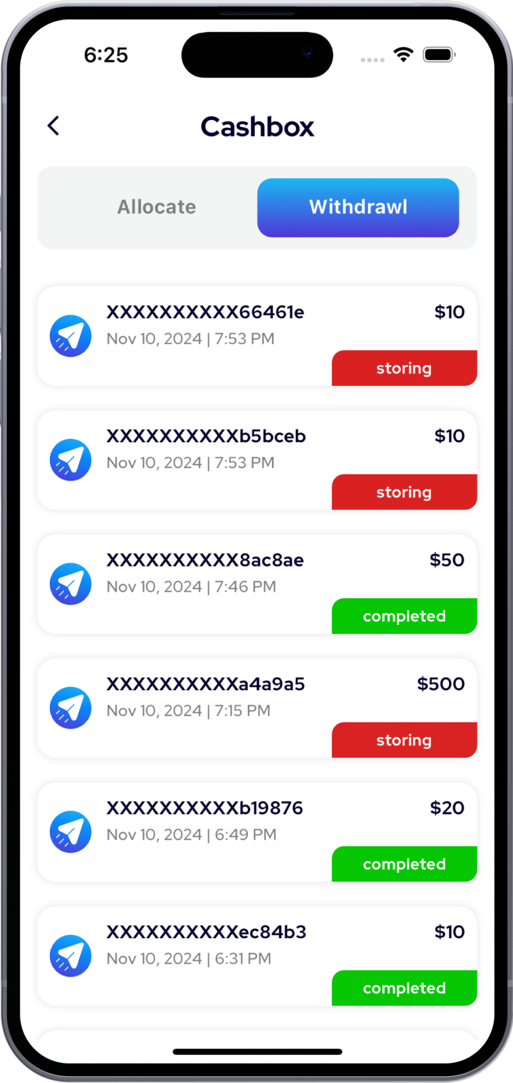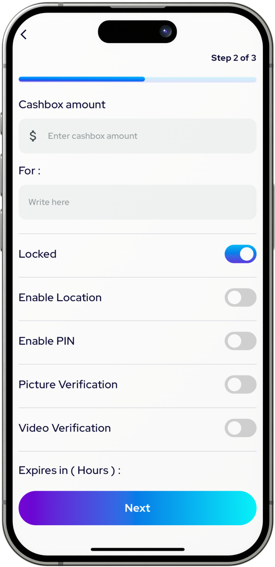 You can set an expiration time for the Cashbox. If the recipient does not unlock the Cashbox within the specified time, the Cashbox automatically expires, and the money is returned to you. This feature ensures that if the transaction is not completed within the desired time frame, the funds are not lost.